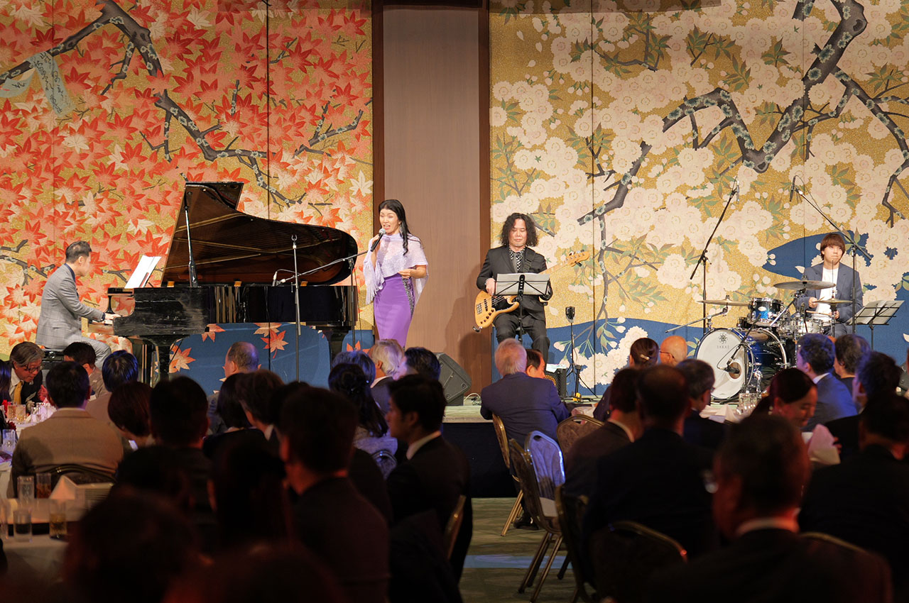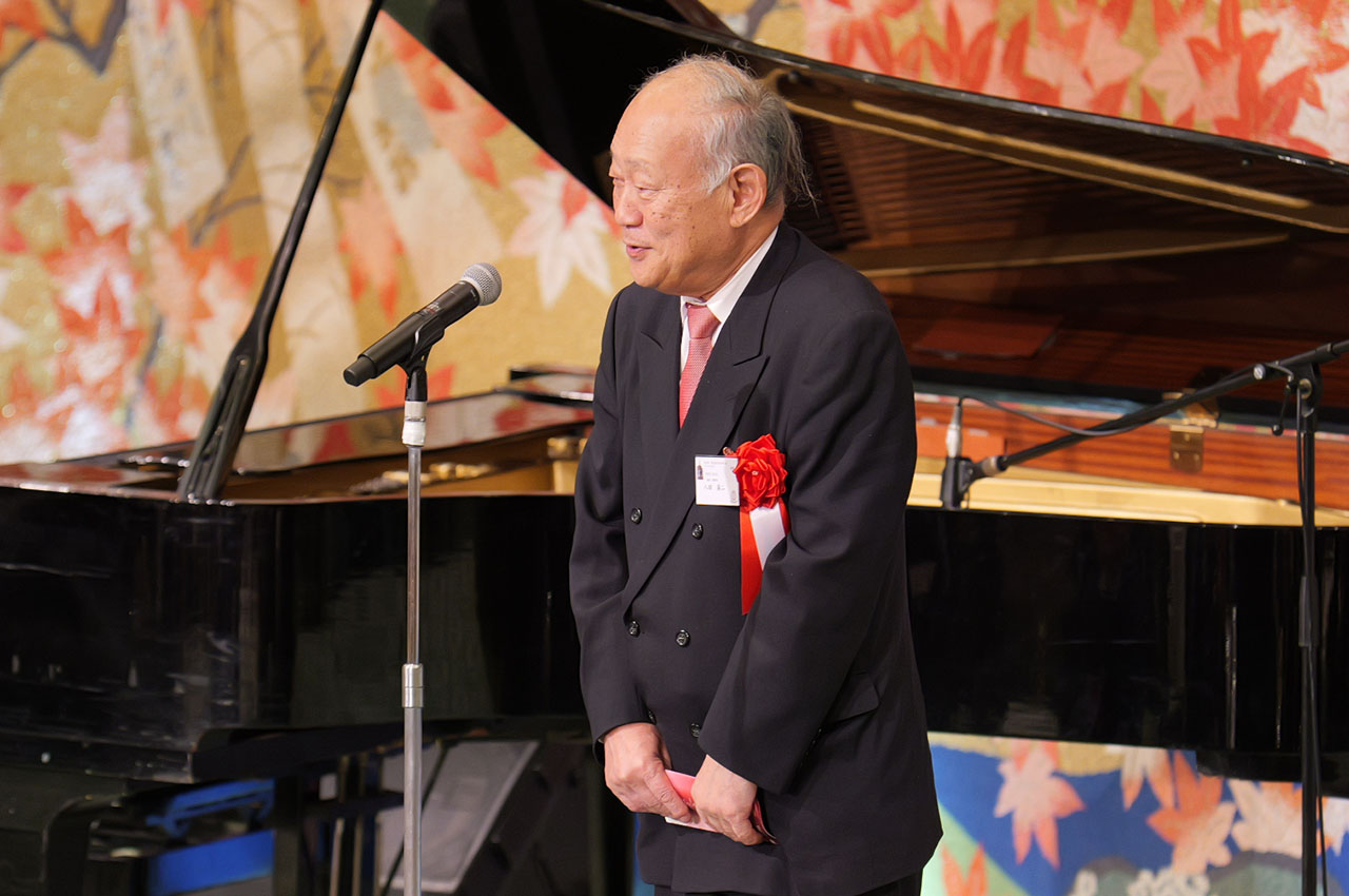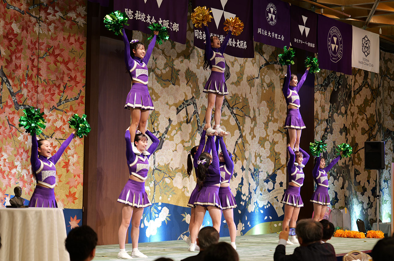 <ご挨拶> クリスマス会の開催にあたり、八田総長・理事長、小原学長、松岡校友会会長をはじめ、学校教職員、校友会本部並びに各支部諸団体ご代表の皆様にはご臨席を賜り、まことにありがとうございました。そしてお集まりいただきました300名を超える校友の皆様お一人おひとりのお蔭をもちまして、クリスマス会がとても華やぎ、また、大いに盛上ることができましたこと大変感謝申し上げます。 私たち校友会大阪支部では、大阪を中心に全国で活躍する校友の皆様と共に夏の総会と冬のクリスマス会の年2回の大きなイベントを通して交流を深めています。 今年のクリスマス会は、昨年に続いて薄田ジュリアさんの司会で音楽祭を開催しました。PART1は石上真由子さん(ヴァイオリン)、今井彩香さん(ピアノ)による優雅で美しい音色を奏でたクラシックコンサート、特に石上さんの超絶技法には全員が魅了されました。PART2は深尾多恵子さん(ヴォーカル)、ぱくよんせさん(ピアノ)、長谷川晃さん(ベース)、長尾琢登さん(ドラム)TAeKO’s D-Trainによるジャジーで心地よいリズムに包まれたジャズライブ、特にカレッジソングは同志社人としての誇りを感じる楽曲でした。その後の懇親会はとても活気に満ち、あちらこちらで旧交を温める輪が拡がりました。宴の最後に應援團チアリーダー部による元気いっぱいの演舞に会場は大いに盛り上がり、恒例となったカレッジソングを皆で斉唱し、会場は同志社人としての一体感に包まれました。 また、今年も多くの新しい校友に参加いただいたことで新たな絆が結ばれていきました。大阪支部クリスマス会は校友が主役です。当会で校友相互の新しい出会いが生まれ、この絆がより強固になっていくことが同志社校友の強いネットワーク作りの基礎になり、一層の発展につながるものと思います。支部長就任にあたり策定した大阪支部スローガンは、新島襄 良心碑にもある通り、そうした校友一人ひとりが一国の良心となって輝けることを願い、目指したい活動の方向性としてお示ししています。